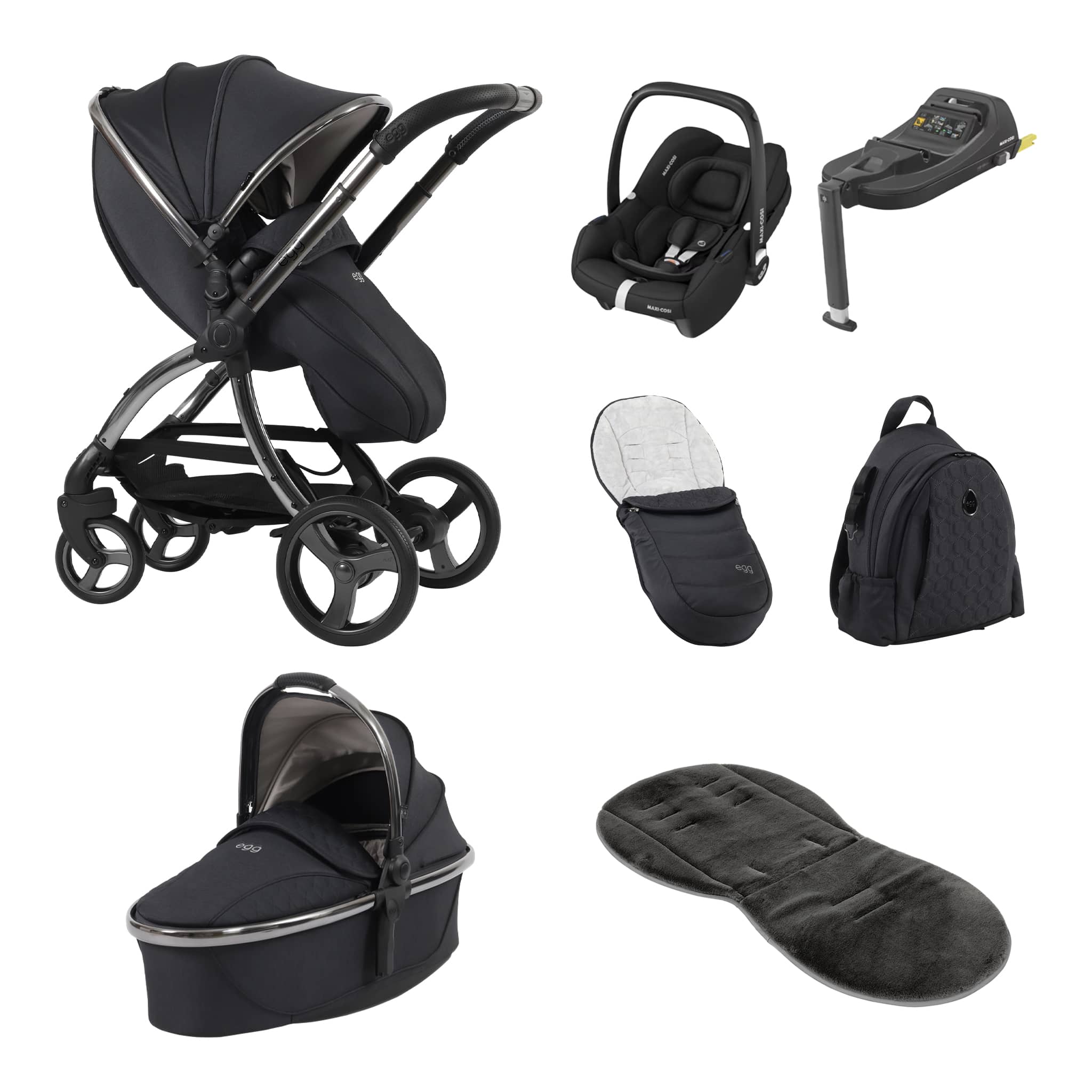 The beautiful soft lined egg3® carrycot comes with a mattress and raincover, as well as a fully adjustable hood and zip on carrycot apron.